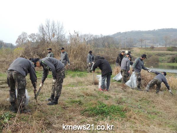 신평면 자원봉사단(단장 이강승)은 24일 6탄약창 장병(창장 서민석) 20여명과 함께 하천변 환경정화활동에 나섰다.