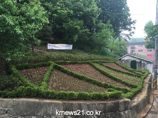 주민자치위원들은 힘을 합쳐 까치산에 패추니아, 수호초, 국화, 베고니아를 심어 말끔한 정원으로 탈바꿈시켰다.