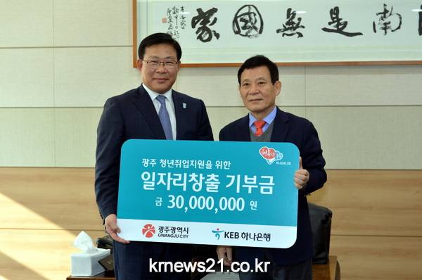 송용민 KEB하나은행 호남영업그룹 대표는 “광주지역 청년일자리 문제해결에 조금이나마 보탬이 되고자 이번 기금을 전달했다.”라며 “앞으로도 청년창업가, 소상공인, 자영업자를 위한 금융 지원 등 광주시의 요청사항에도 적극 협력하겠다.”라고 말했다.