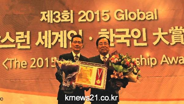 김준성 영광군수가 2015 글로벌 자랑스런 한국인 대상 시상식에서 글로벌 지방자치발전 공헌부분 대상의 영예를 안았다.