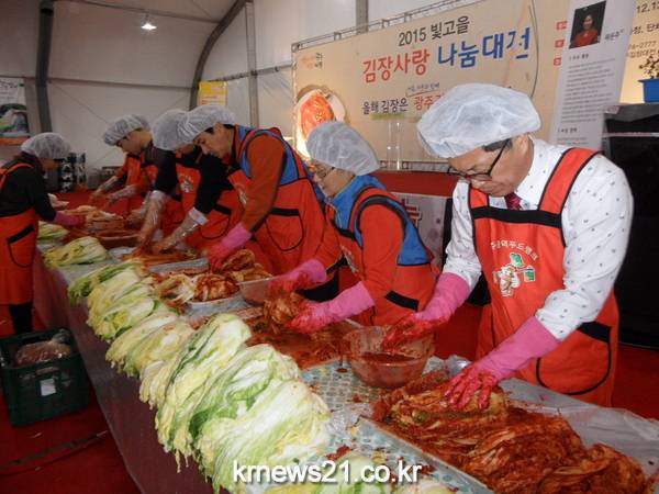 광주광역시는 11일 광주김치타운에서 한국전기안전공사 전남지역본부 봉사단, 푸드뱅크 관계자 등 40여 명이 참여한 ‘연말 따뜻한 김치 나누기 행사‘를 개최했다.