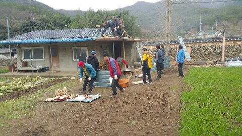 이러한 현실에서 성전의 젊은 청년들이 솔선수범하여 집수리봉사를 실시하는 등 살기 좋은 동네 만들기에 앞장섰다. 청년회원들은 지붕개량에 필요한 목재와 강판 등 모든 재료를 준비하고 아침 일찍부터 전문기술자 3명과 함께 지붕개량을 실시했다.