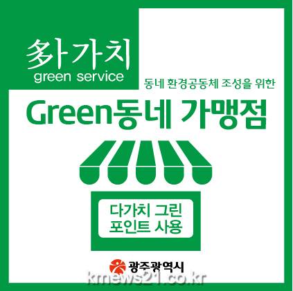 광주광역시는 정부3.0 브랜드과제로 최우수 기관상을 수상해 역점시책으로 추진 중인 ‘다가치 그린’ 동네 만들기 사업 가맹점을 모집하고 있다.
