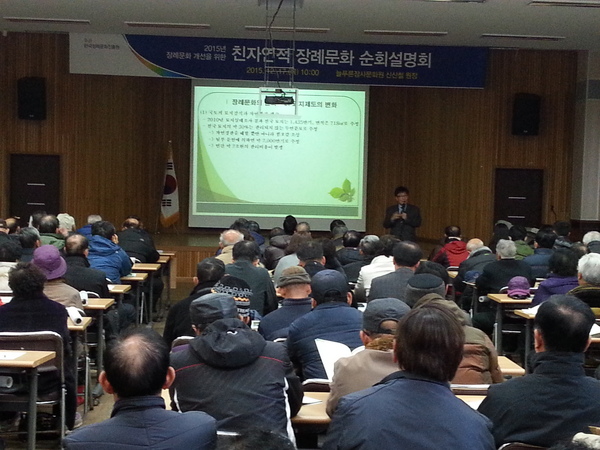 해남군(군수 박철환)은 지난 12월 17일 농업기술센터 교육관에서 해남군 노인회, 군민, 공무원 등 150여명이 참석한 가운데 ‘친자연적 장례문화 의식개선 교육’을 실시했다.