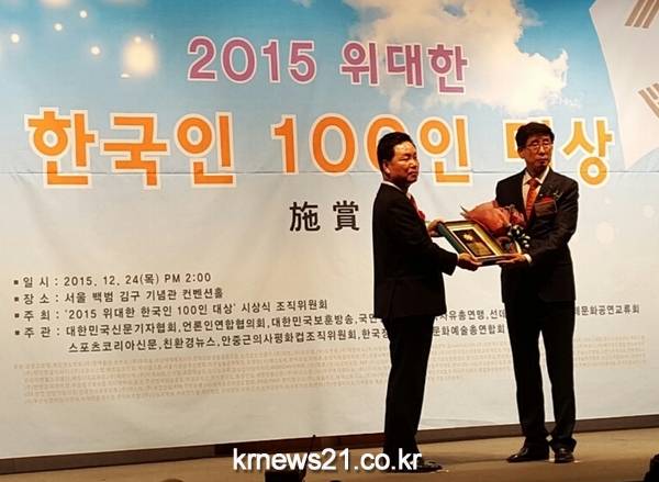 시상식은 ‘2015 위대한 한국인 대상 조직위원회’가 주최하고 대한민국신문기자협회 등 6개사 주관으로 진행됐다.