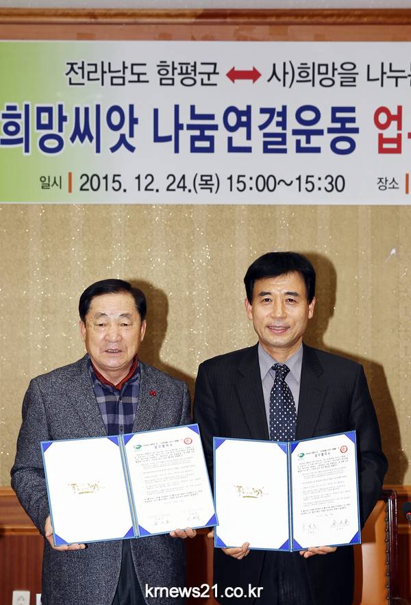 함평군(군수 안병호)은 24일 군청 소회의실에서 (사)희망을나누는사람들(회장 김정안)과 업무협약을 체결했다.