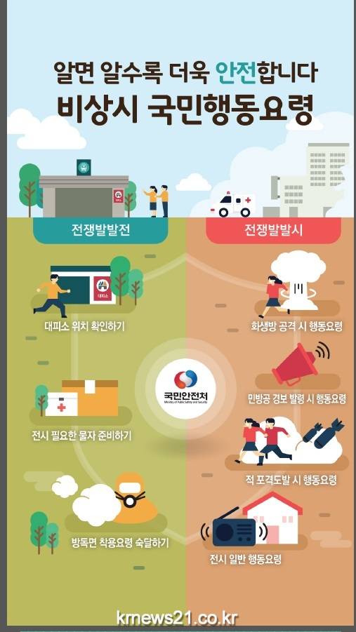 또한, 비상 시 대피소 찾기, 방독면 착용 요령, 사태별 행동요령 등 사전에 주변 대피소를 찾아 이동경로를 확인해 두고 상황이 악화돼 북한의 포격도발이나 공습에 대한 경계경보 발령 시 대피할 때 확인해야 할 사항을 담은 ‘비상사태 시 국민행동요령’ 홍보물을 시와 자치구 민원실, 안전체험관, 민원 안내실 등에 비치해 활용토록 하고, 시와 자치구 홈페이지(누리집)에도 게시해 시민 홍보를 강화하고 있다.
