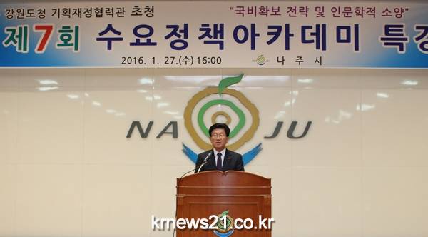 나주시는 27일 오후 시청 대회의실에서 박형수 강원도청 기획재정협력관을 초청하여 ‘국비확보 전략 및 인문학적 소양’을 주제로 새해 첫 수요정책아카데미를 실시했다.