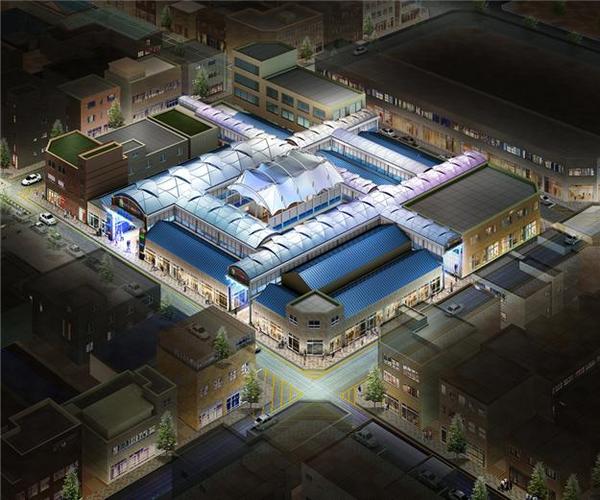 시장의 주요 부분인 5개 통로로 구성된 아케이드 막구조는 장기간 사용할 수 있는 사용연한이 30년 이상되는 템프론 자재를 사용하고, 바닥은 화강암으로 설치해 내구성을 더하고 미관도 살려 카트를 이용해 시장을 볼 수 있는 환경을 조성한다.