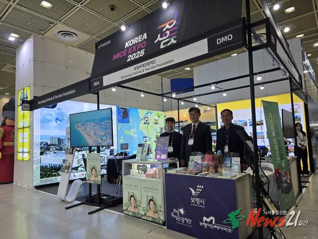 보령축제관광재단은 2025년 11월 3일부터 5일까지 3일간 서울 삼성동 코엑스에서 개최된 국내 최대 규모 마이스 산업 전문 전시회 ‘코리아 마이스 엑스포 2025’에 참가하여 홍보마케팅을 추진했다.       ‘코리아 마이스 엑스포 2025’는 전시부스 홍보, 비즈니스 상담, 컨퍼런스 및 설명회, 네트워킹 리셉션, 팸투어 등 다양한 프로그램으로 진...