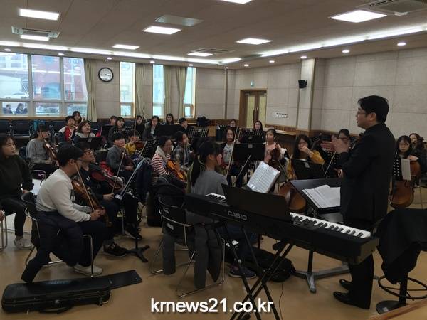 악기연주에 관심 있는 아이들이 모여 창단된 청소년오케스트라는 단원 40명(기존 26명, 신규 14명), 서울대학교 음악대학 출신 심상욱 지휘자를 비롯한 강사 5명 등 45명으로 구성되었다.