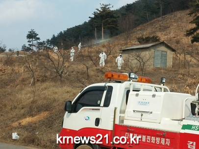 김포시는 문수산 매실나무 경관조림지 4ha에 대해 봄꽃 개화시기를 앞두고 깍지벌레가 발생되어 생육저해 및 꽃․과실의 기형 등 피해를 최소화하기 위해 지난 3.2∼3.3(2일)까지 긴급방제를 실시했다고 밝혔다.