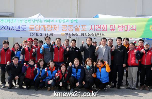 영암농협 주관으로 열린 이번 공동살포 시연회는 전동평 영암군수와 김양권 농협영암군지부장을 비롯한 농업인 등 100여명이 참석한 가운데 농촌의 고령화로 인해 무상으로 공급된 규산질 비료를 살포하지 못하는 사례를 개선하고자 개최됐다.
