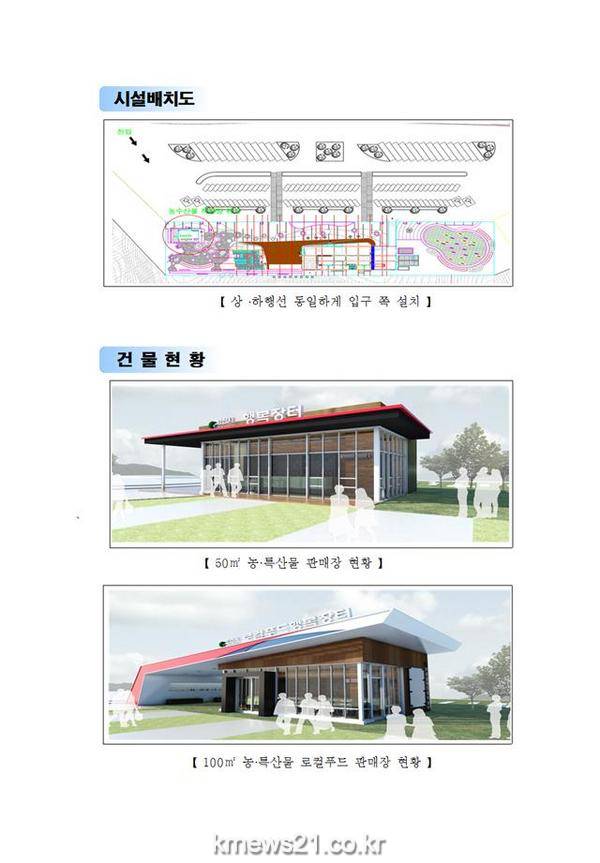 농·특산물 판매장 위치를 이용객이 편리하게 이용할 수 있는 휴게소 화장실 인근으로 설치하고, 올해는 농·특산물 판매장 건축설계를 완료하고, 내년 6월에 준공해 고속도로 개통과 동시에 개설한다는 계획이다.