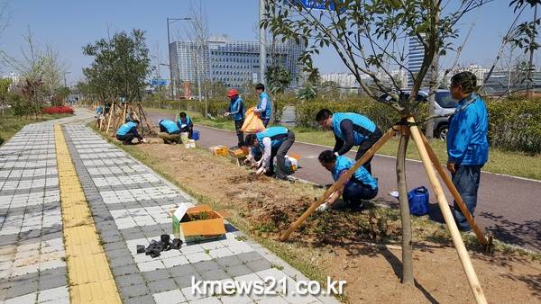 한국농어촌공사는 지난 19일 청사 앞 공공용지인 연결녹지에 직원 30여명이 샤스타데이지, 꽃범의 꼬리, 송엽국의 꽃묘 6,200본을 식재하였다.