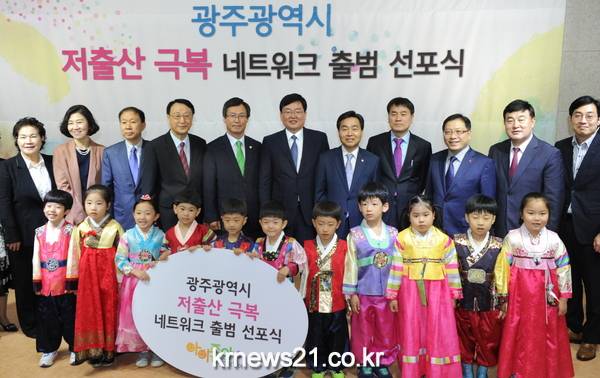 출산률 제고가 범국가적 과제가 되고 있는 가운데 10일 광주광역시청 2층 무등홀에서 지역사회가 역량을 결집해 아이 낳고 키우기 좋은 행복한 사회를 만들기 위한 ‘광주광역시 저출산 극복 네트워크’가 출범했다.