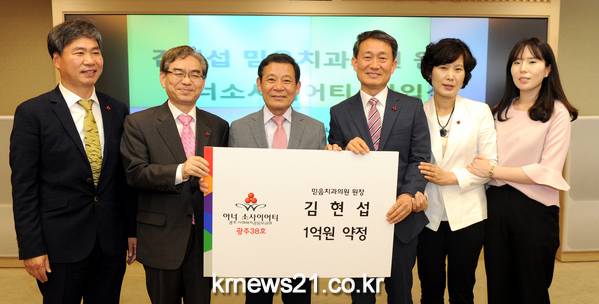 주인공은 김현섭(52) 믿음치과 원장으로, 광주광역시는 20일 시청 3층 비즈니스룸에서 윤장현 시장(광주사회복지공동모금회 명예회장)과 김 원장이 참석한 가운데 ‘아너소사이어티’ 회원 가입식을 개최했다.