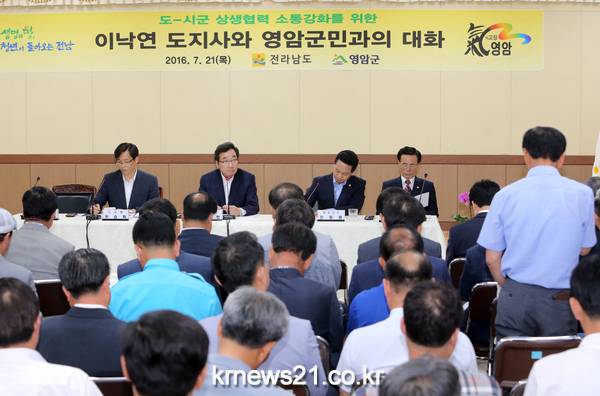 22개 시․군 현장방문의 일환으로 영암읍사무소에서 펼쳐진 이번 영암군민과의 대화는 전동평 영암군수와 박영배 군의회 의장, 우승희, 김연일 도의원 등 100여명의 각급 기관사회단체장과 주민 이 참석한 가운데 이뤄졌으며,