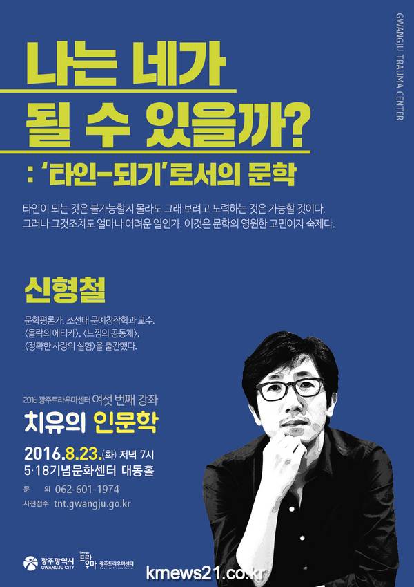 광주트라우마센터는 오는 23일 오후 7시 5·18기념문화센터 대동홀에서올해 여섯 번째 ‘치유의 인문학’을 개최한다.