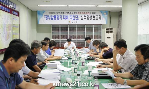 철원군은 2017년(‘16년 실적) 정부합동평가 우수성과 달성을 위하여 추진단(단장 부군수 박종완)을 구성하고, 추진단 실적향상 보고회(부군수 주재)를 개최하였다.