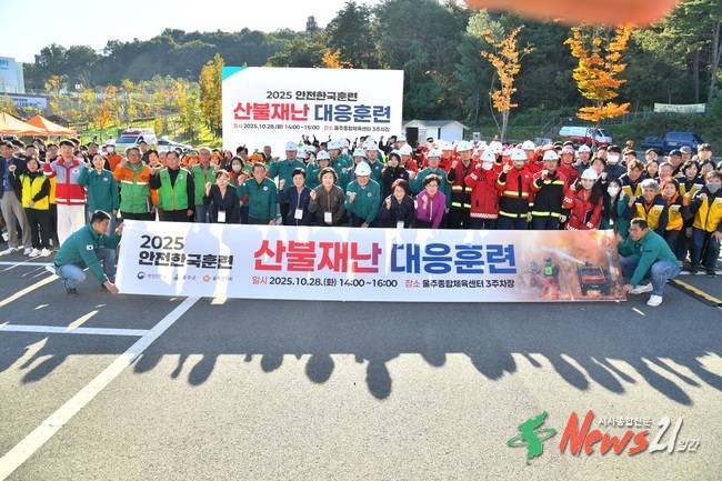 (뉴스21일간/최원영기자)=울산 울주군이 28일 삼남읍 봉화산 일대에서 산림청, 서울주소방서, 울주경찰서, 7765부대, 대한적십자사 울산지사 등 16개 기관 300여명이 참여한 가운데 ‘2025년 재난대응 안전한국훈련’을 실시했다.이번 훈련은 행정안전부의 재난대비훈련 기본계획에 따라 산불 발생 상황을 가정해 관계기관별 현장대응체계를 확...