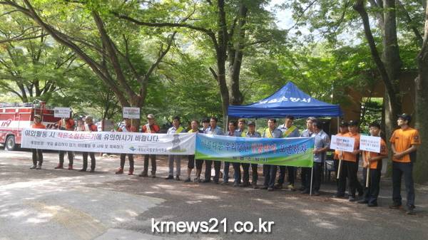 정읍소방서(서장 김일선)는 지난 4일 내장산에서 국립공원관리공단, 의용소방대원과 함께 안전한 산행을 위한 예방캠페인을 실시하였다.