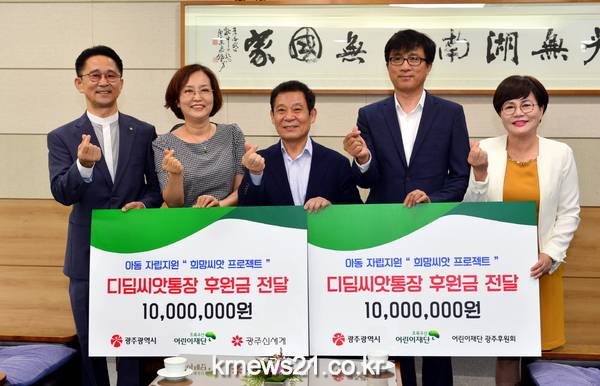 광주광역시는 6일 ㈜광주신세계(대표이사 임훈)와 초록우산어린이재단 광주지역본부(본부장 김은영)으로부터 저소득 계층의 아동의 자립지원을 돕는 ‘희망씨앗프로젝트’ 후원금 2000만원을 전달받았다고 밝혔다.