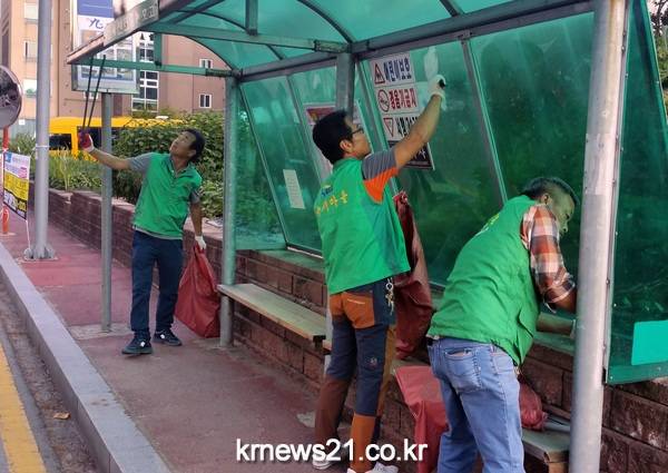 회원들은 특히 불법 광고물 제거와 함께 거미줄과 자동차 매연으로 인한 찌든 때를 벗겨내는 등 승강장 인근 지역을 말끔히 정비했다.