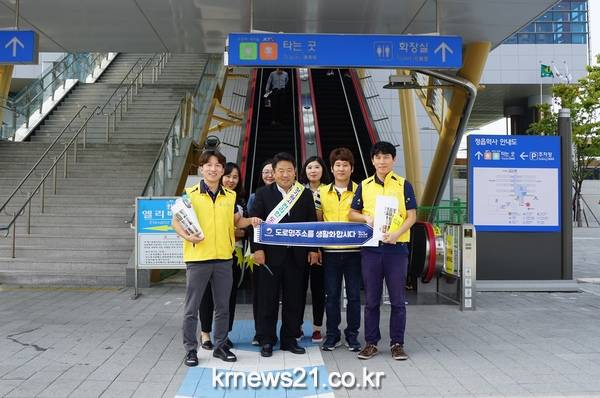 이날 참여자들은 도로명주소 홍보 물품과 리플릿 등을 배부하면서 도로명주소의 우수성을 알리고 적극 사용할 것 등을 당부했다.
