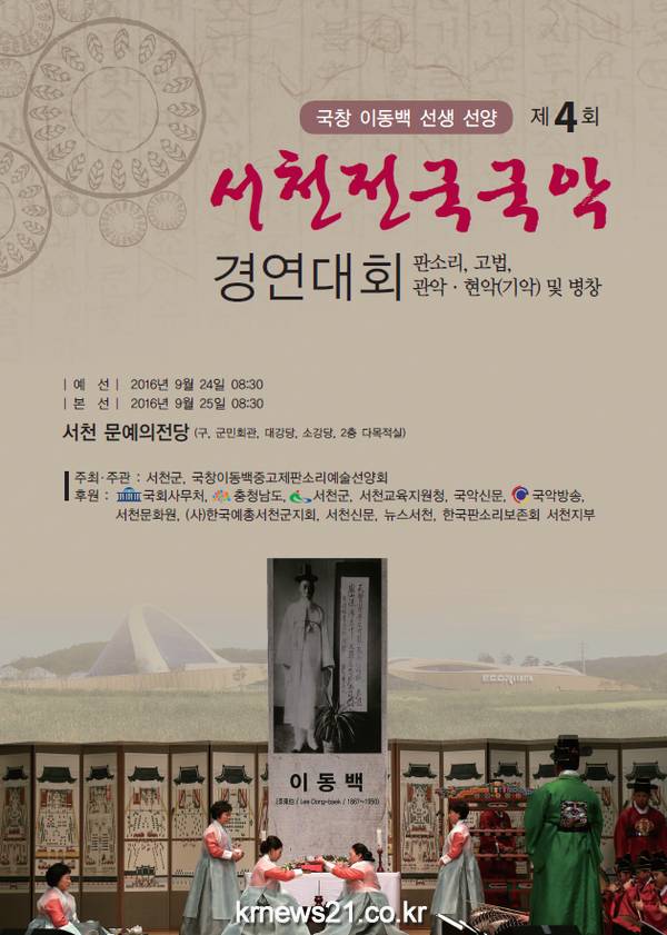 서천군은 오는 24일부터 25일까지 문예의 전당에서 국창 이동백 선양 ‘제4회