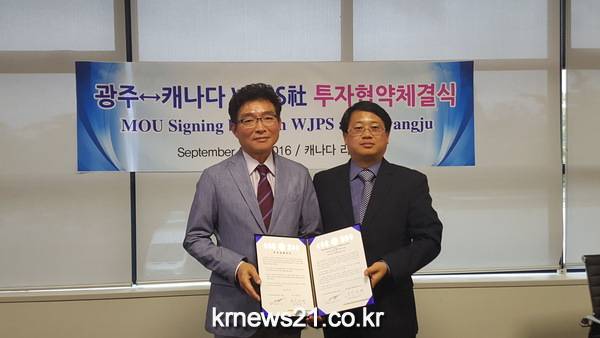 광주광역시 투자유치단(단장 이상배 전략산업본부장)은 23일(현지시간) 캐나다 리치몬드(Richmond)에 소재한 WJPS 본사를 방문해 포장재 제조 공장 설립을 위한 500만달러 투자 협약을 체결했다.