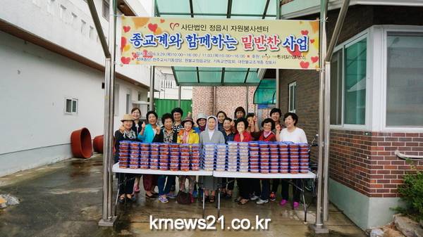 이날 행사에는 원불교정읍교당 오은도교감, 천주교시기동성당 박성팔안드레아신부, 정토사 원공스님 등 종교계대표와 종교계 자원봉사자 30여명이 참석하여 3가지의 밑반찬을 만들어 어렵고 소외된 이웃 120세대에 전달되었다.