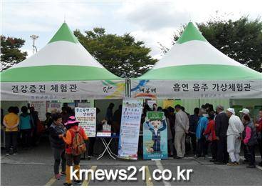 이날 행사에는 심뇌혈관질환 예방관리를 위한 고혈압, 혈당측정 및 상담, 비만체험 뚱뚱이 홀쭉이 거울, 비만조끼입어보기, 내허리둘레 알기, 금연 환경조성을 위한 일산화탄소 측정 및 금연상담, 절주 음주가상체험, 구강 건강을 위한 올바른 잇솔질 체험등 어린이부터 어르신까지 다양한 연령층이 참여하는 체험관을 마련하였으며, 체험 후에는 건강정보 리플렛을 배부하여 스스로 건강 생활 분위기를 조성 할 수 있도록 하였다.