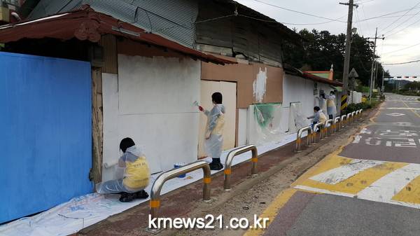 지난 7일 살수차로 벽면 청소를 하고 바탕색 칠하기, 광주여대 미술치료학과 학생들의 밑그림 그리기 등 사전 준비를 마쳤다. 15일에는 농촌과 자연이 어우러진 세동마을 벽화그리기를 완성할 예정이다.