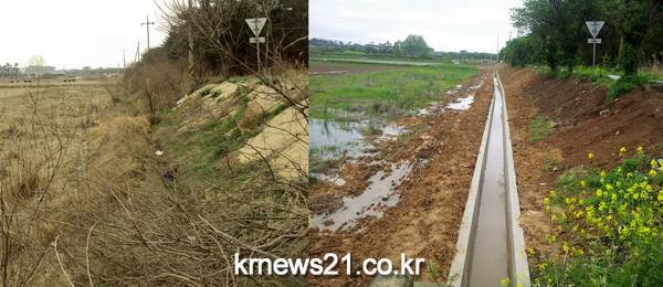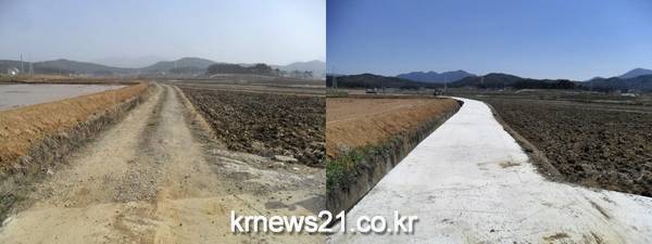 42억원을 투입해 35km의 농로와 기계화 경작로 확포장공사를 추진 중에 있고, 21억원을 들여 용·배수로 8km를 정비하고 있다,