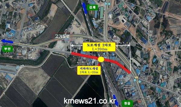 이에따라 시는 주민들과 함께 국민권익위 등에 지속적으로 건의하는 등의 노력 끝에 신태인(호남선)철도를 횡단하는 지하차도를 2차선으로 확장, 개설할 수 있게 됐다.