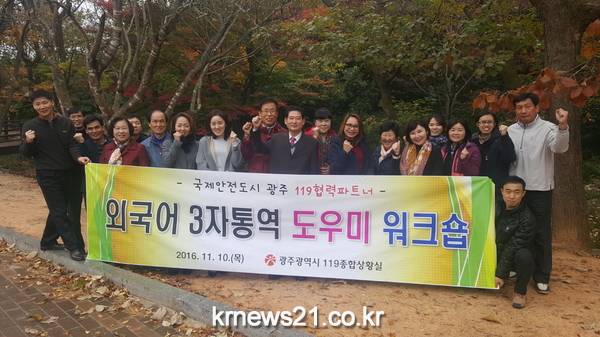 광주광역시 소방안전본부 119종합상황실은 10일 시청 17층 회의실에서 ‘외국어 3자통역 도우미 워크숍’을 개최했다.
