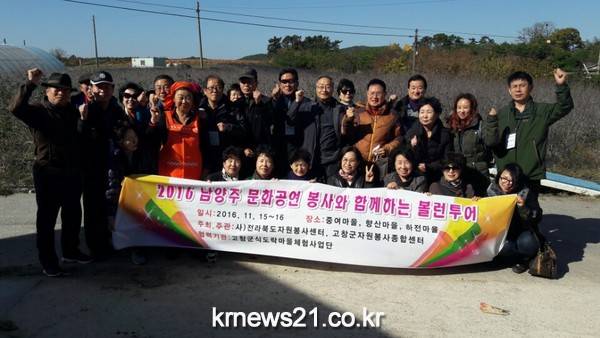 고창군자원봉사종합센터(소장 김종균)가 지난 15일부터 16일까지 경기도 남양주 문화공연팀이 참여한 가운데 봉사와 여행을 함께 즐기는‘볼런투어’활동을 진행했다.