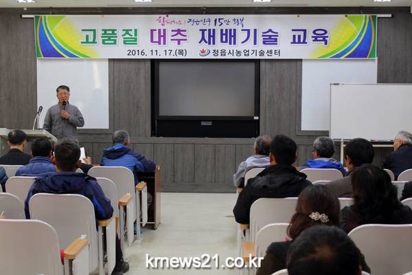 정읍시농업기술센터는 지난 17일 정읍 제2청사에서 30여명이 참석한 가운데 ‘고품질 대추재배기술 교육’을 가졌다.