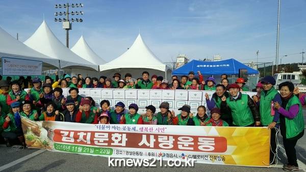 정읍시새마을회(회장 박우서)는 정읍시새마을지도자와 부녀회원 200여명이 참여한 가운데 지난 21일부터 23일까지 3일간 정읍시 공설운동장에서‘사랑의 김장김치 나누기 행사’를 가졌다.