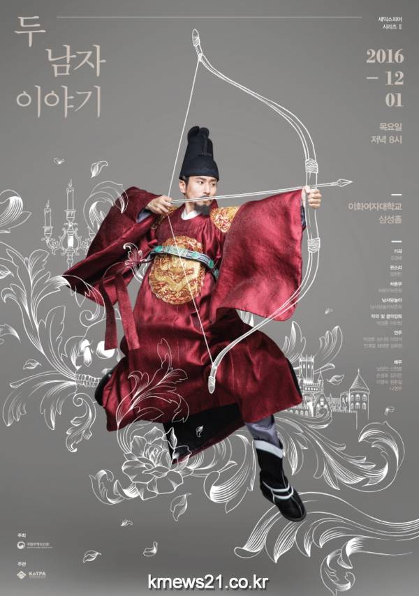 문화재청 국립무형유산원(원장 강경환)이 주최하고 전통공연예술진흥재단(이사장 손혜리)이 주관하는 인류무형유산 대표목록 합동공연 ‘두 남자 이야기’가 오는 12월 1일 이화여자대학교 삼성홀(서울시 서대문구 대현동)에서 개최된다.