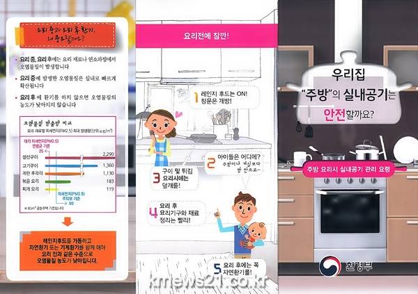 시 관계자는 “요리할 때 미세먼지와 포름알데히드, 이산화질소 등 오염 물질이 발생해 반드시 환기가 필요하다는 환경부의 실내공기 실태조사 결과가 나왔다”며 “이에 따라 대 시민 홍보활동을 강화하고 있다”고 밝혔다.