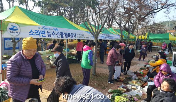 여수시 소라면에서는 소라면농촌지도자연합회와 생활개선회 주관으로 지난 28일 차동당산어린이공원에서 농수산물 행복장터를 열었다.