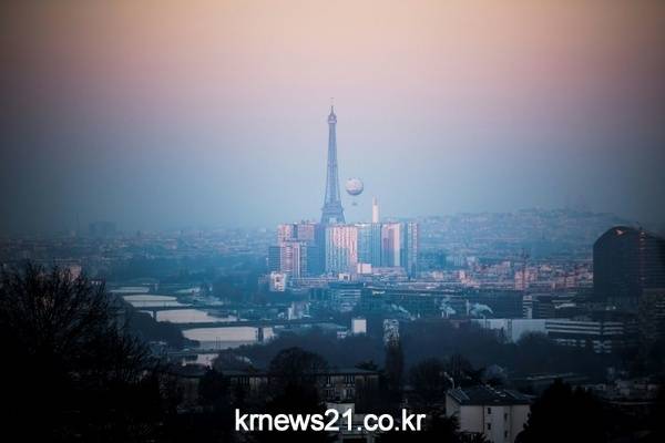 ▲ AFP / LIONEL BONAVENTURE [제공자ⓒ 뉴스21통신. 무단전재-재배포 금지.] 파리의 오염된 공기 뒤로 에펠탑이 희미하게 모습을 드러내고 있다.