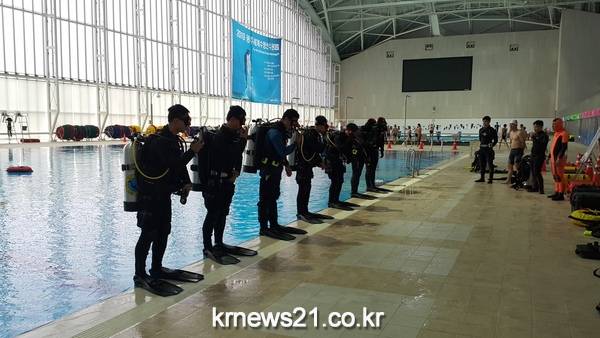 광주광역시 119특수구조단은 겨울철 수난사고 발생 시 촌각을 다투는 인명구조능력을 높이기 위해 7일부터 오는 9일까지 3일간 남부대 수영장에서 119 특수구조대원 31명이 참여한 가운데 훈련을 실시하고 있다.