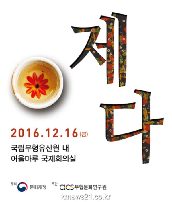 문화재청(청장 나선화)은 오는 16일 오전 10시 전북 전주시에 있는 국립무형유산원 어울마루 국제회의실에서 ‘제다(製茶)’가 국가무형문화재로 지정된 것을 기념하는 학술대회를 개최한다.