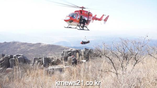 훈련 현장에는 119특수구조단 소속 현장지원팀, 산악구조대, 항공구조구급대, 특수구조대 대원 30여 명이 참여하고 소방헬기를 비롯해 장비 5대가 동원됐다.
