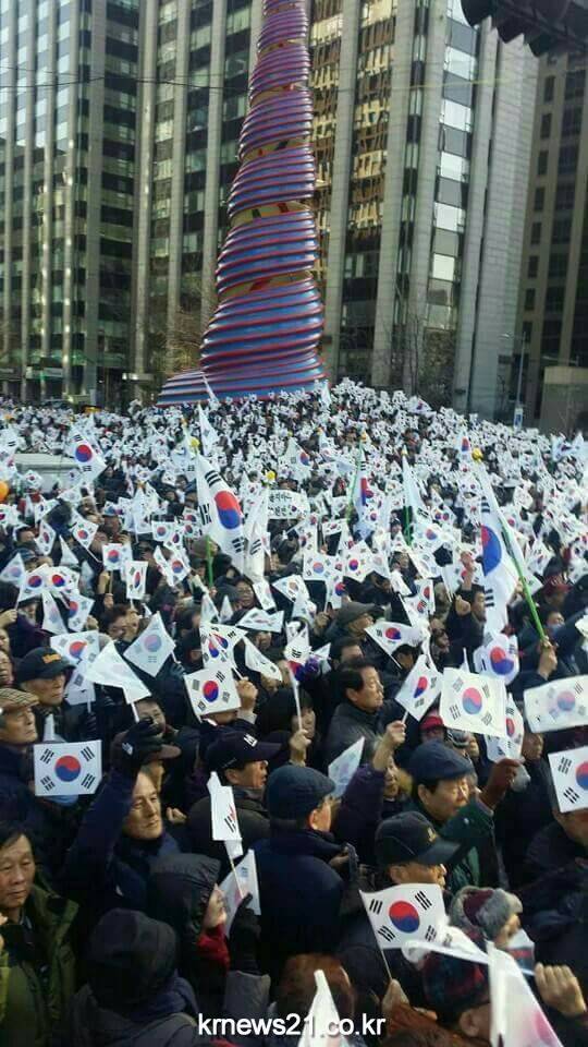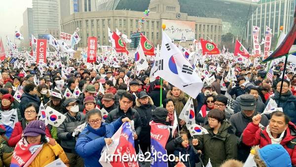 4일 오후 서울 중구 덕수궁 대한문 앞에서 열린 '박 대통령 탄핵 기각을 위한 국민총궐기 운동본부(탄기국)' 주최 '제11차 탄핵 기각을 위한 태극기 집회' 참가자들이 구호를 외치고 있다.