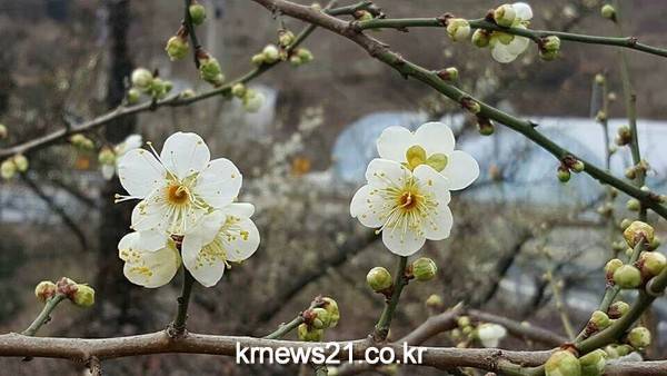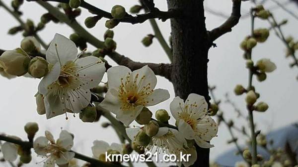 활짝 핀 매화가 봄이 다가오고 있음을 알리고 있다.