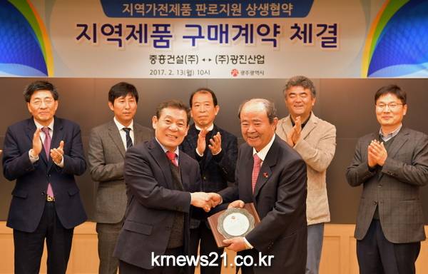 중흥건설㈜은 이번 50억원 규모의 계약 외에도 ㈜센도리(대표 박문수)의 공기순환기, ㈜은하(대표 용영수)의 주방용 레인지후드 제품도 연간납품 계약을 체결 중에 있어 지역가전제품 판로 지원에 적극 참여하고 있다.